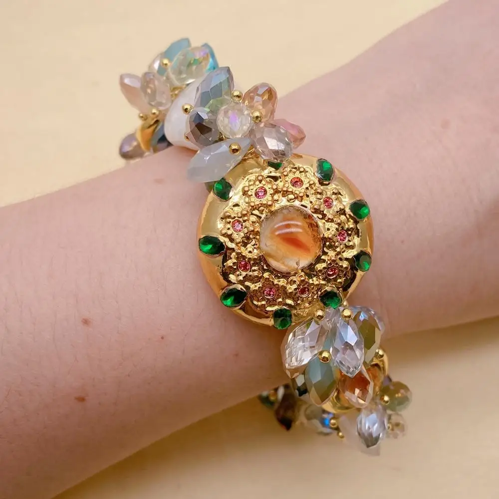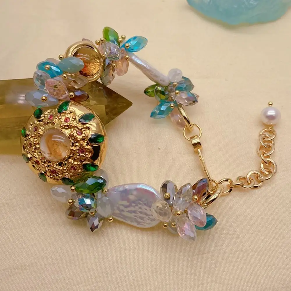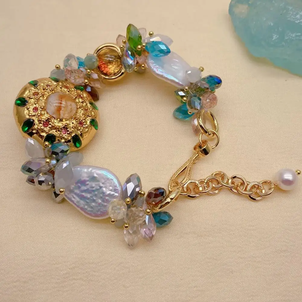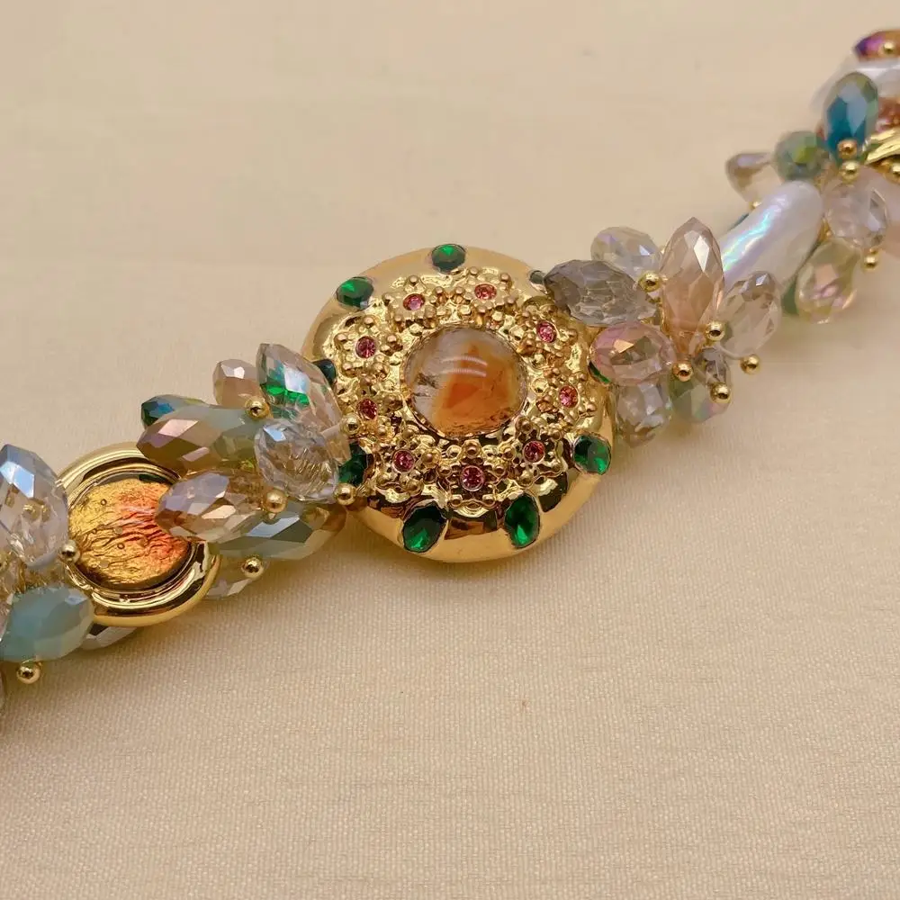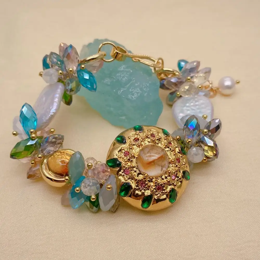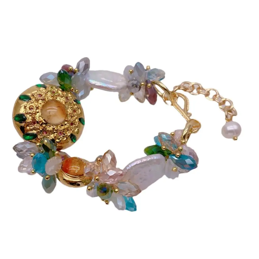 KKGEM 17x22mm White Keshi Pearl Multi Color Crystal Murano Glass Beaded Bracelet