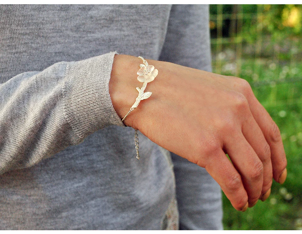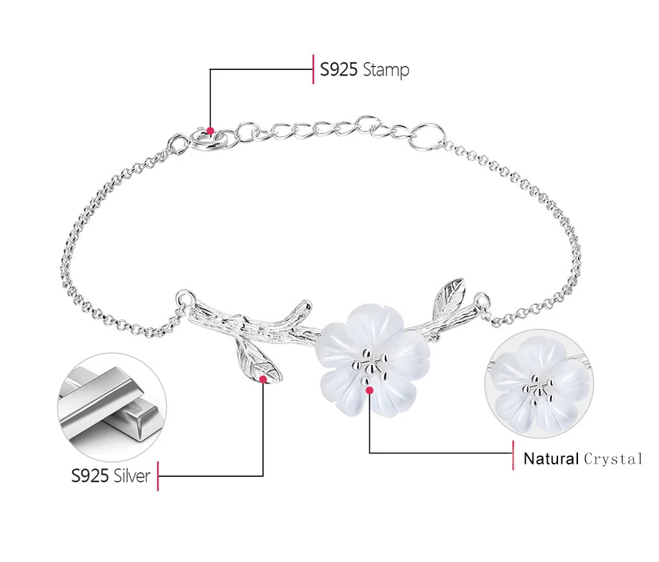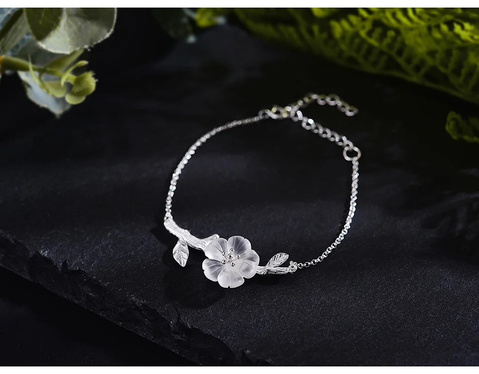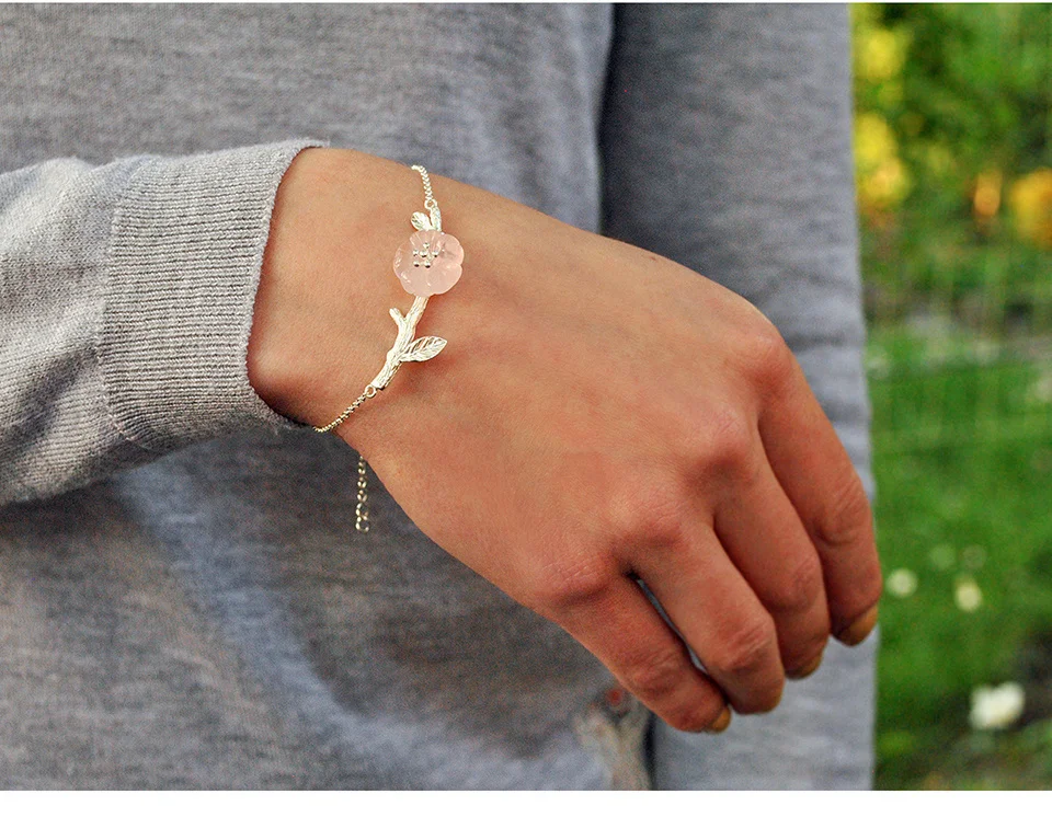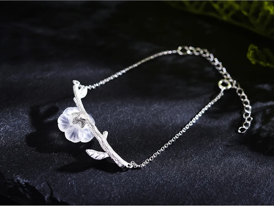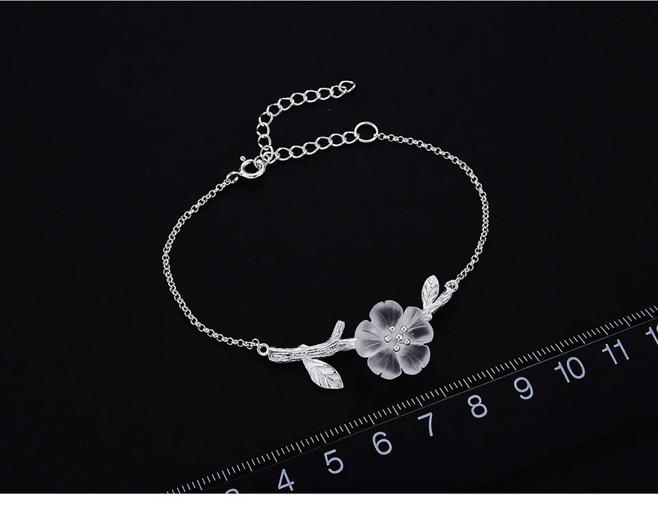 Lotus Fun Real 925 Sterling Silver Natural Crystal Handmade Fine Jewelry Flower in the Rain Design Charm Bracelet for Women Gift